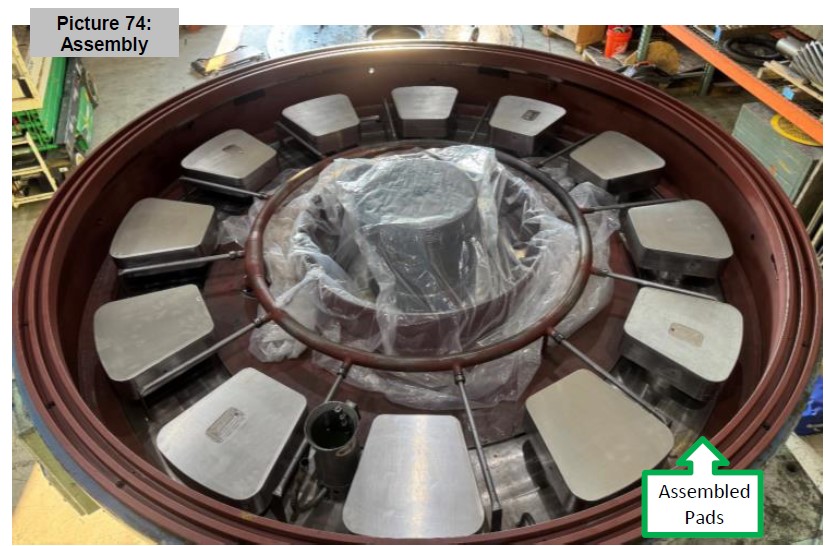 - The customer supplied an OEM Babbit bearing assembly that was incorrect for this style gearbox. Seven of the twelve Babbit pads were missing machining features critical for operation. To remain on schedule, we worked through the night to machine the pads for installation the next morning.
